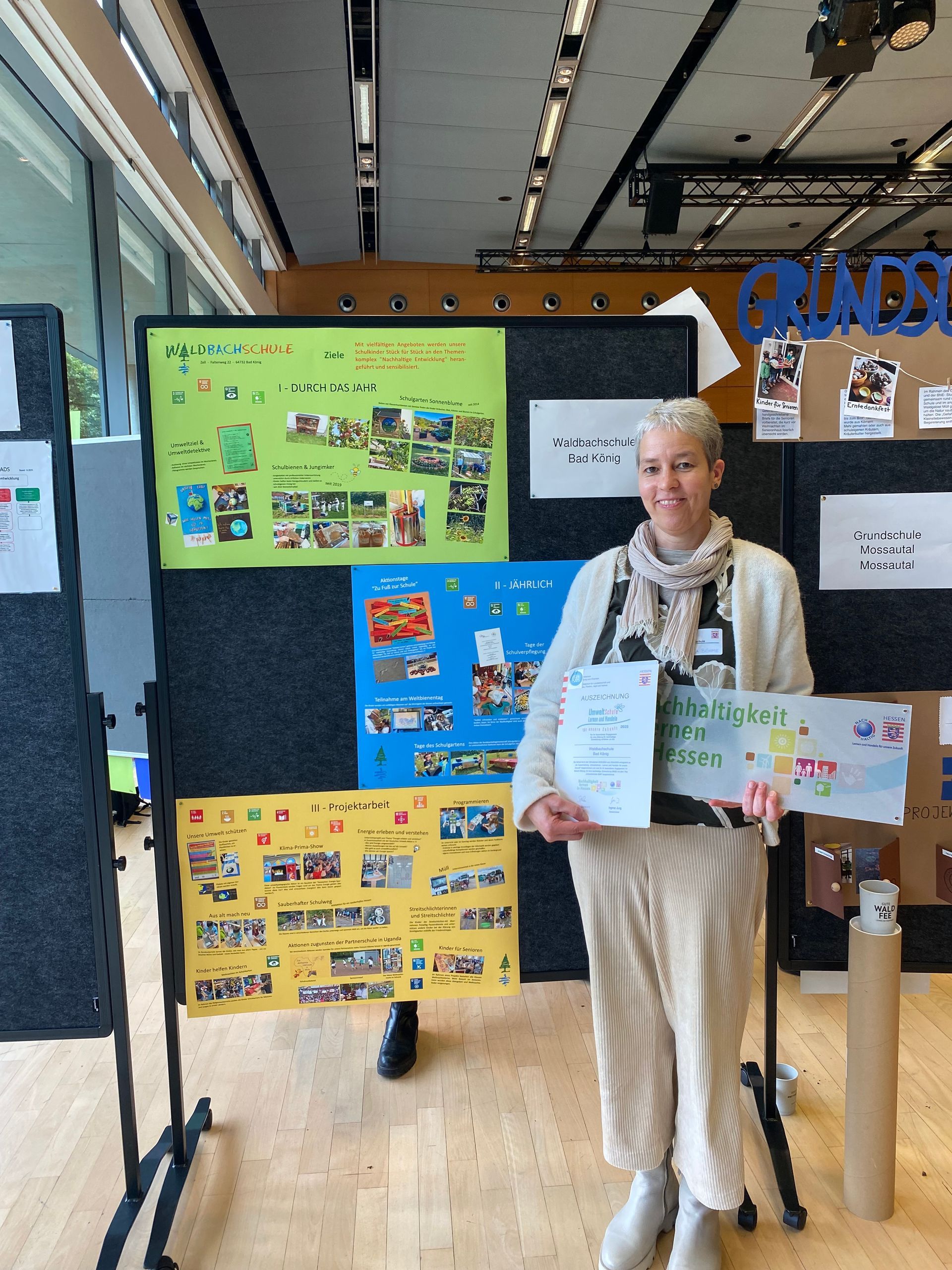 Große Freude bei der Waldbachschule: Sie wurde am 26.09.2025 als „Umweltschule – Lernen und Handeln für unsere Zukunft“ ausgezeichnet. Gemeinsam mit 135 weiteren hessischen Schulen erhielt sie im Congress Park Hanau die begehrte Ehrung für ihr vorbildliches Engagement in Umweltbildung und Nachhaltigkeit.